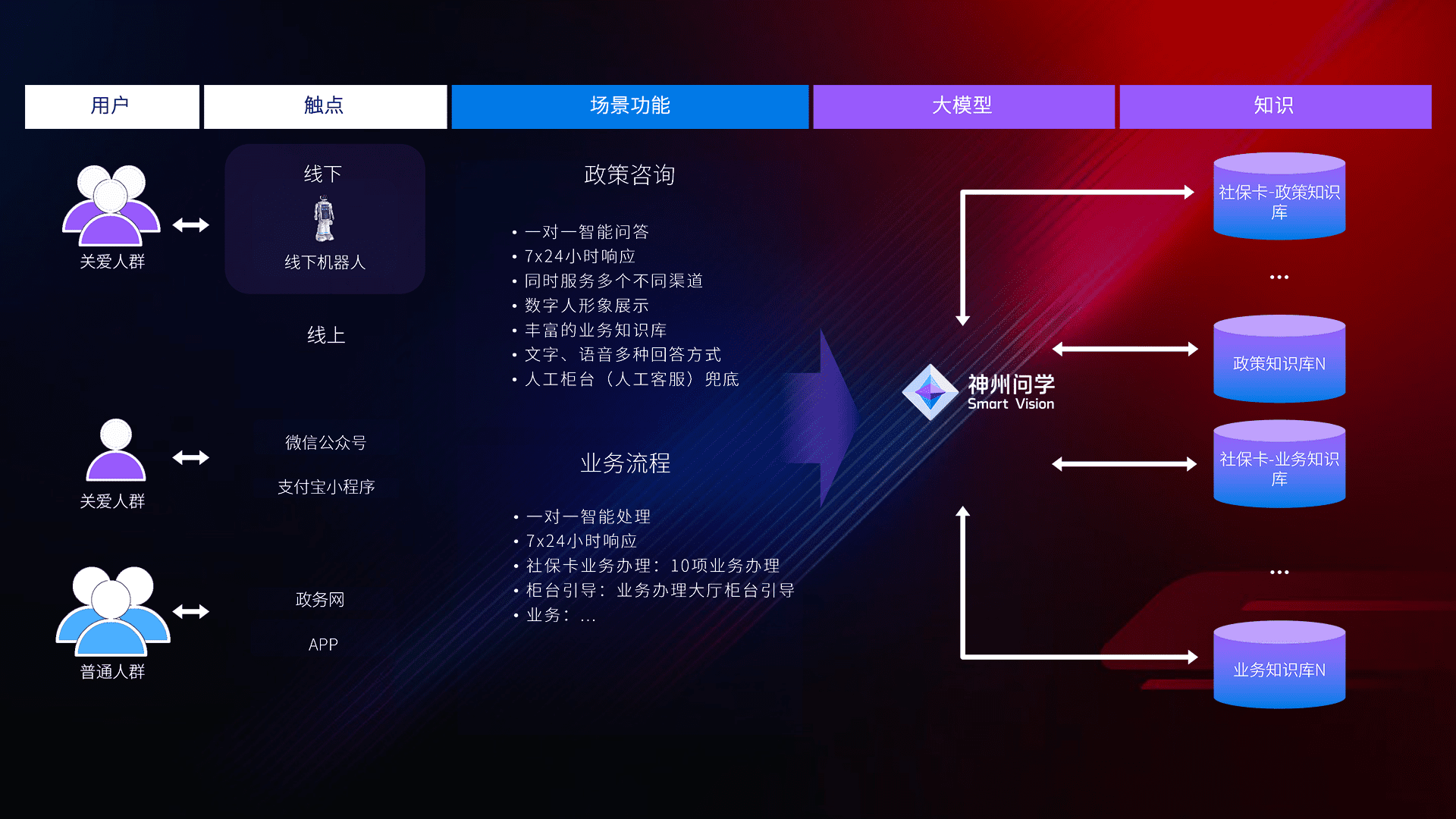 • 线上线下全覆盖:线上提供微信公众号、、、支付宝小程序、、、、政务网、、app多种渠道,,,,与线下机器人形成完整服务体系。。。。